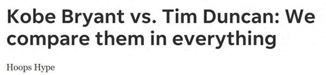 邓肯VS科比!两大NBA传奇巨星谁更强?美媒《hoopshype》通过8大板块全面对比给出答案,结果4-4难分伯仲。