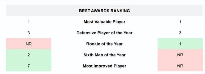 邓肯获胜项:MVP、DPOY和最佳新秀。