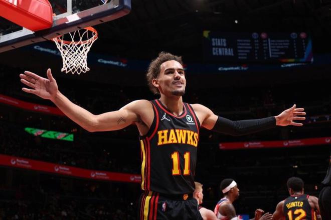 首先,我们先来说说特雷·杨在进攻端的问题,的确在进入NBA之后,他就展现出了不俗的三分投射能力,同时还有一手组织能力,截止到目前,生涯场均可以贡献25.2分、3.5个篮板和9.8次助攻,并且还拿到了一个助攻王的头衔,如果只从数据层面看,他完全是一个顶级球星的存在。