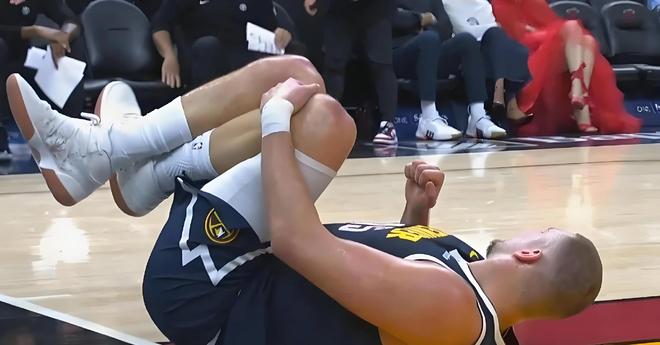 可就在这时候,伤病来了。打热火那场,队友一个不小心踩到他的脚踝,约基奇左膝过度伸展,当场痛苦倒地。最新消息是,他遭遇了骨挫伤,最少要歇4周,甚至可能到全明星赛后才能回归。这一伤,麻烦大了!