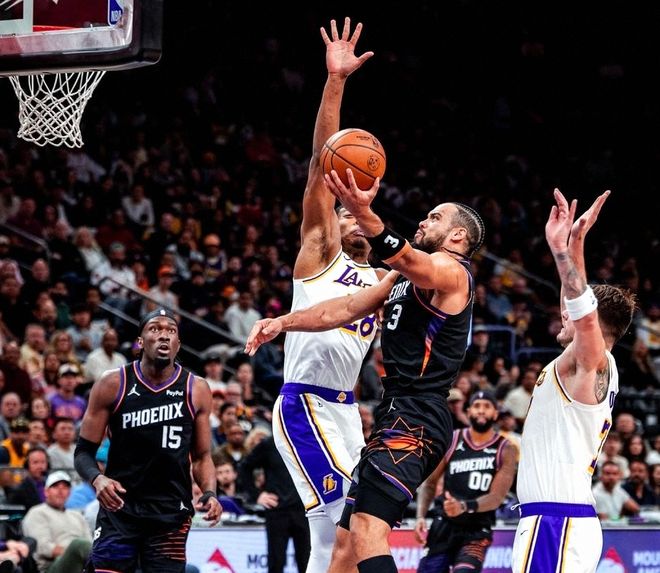 虽然队中拥有里弗斯、詹姆斯、东契奇三位持球核心,可对于外线防守方面,球队在上赛季送走芬尼-史密斯之后,就没有一位球员能真正扛起外线防守重任,正是因为这样,近日YahooSports就曝出,湖人队和太阳队有一笔交易正在商谈中,并且已经进入正式谈判阶段。