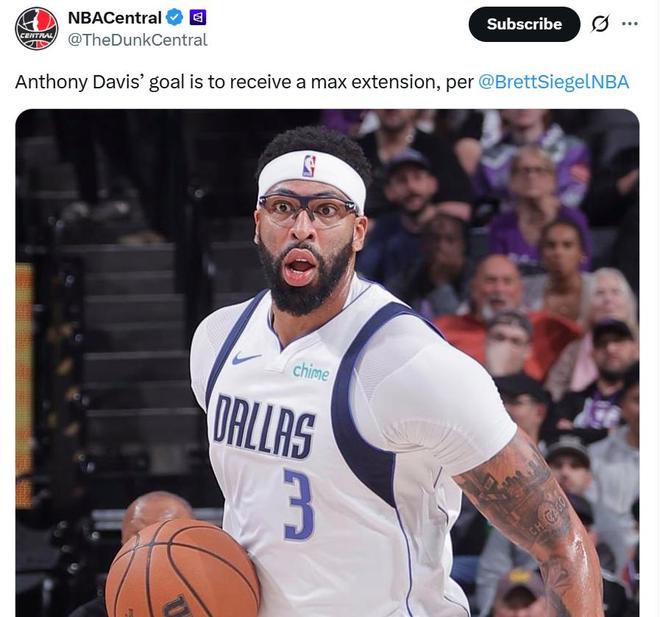 NBA记者Brett Siegel也在最新的播客节目中曝出,浓眉哥团队今夏的目标是一份价值4年2.75亿美元的顶薪续约合同。