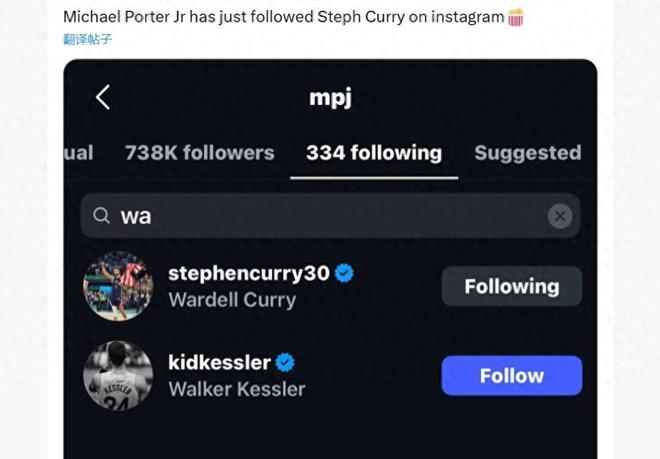 随着波特个人社交媒体加了库里好友,波特是否会加盟勇士这事似乎也有了定论。介于球员也是公众人物,不会无缘无故加其他球队球员。这等同于波特加盟勇士只待官宣。