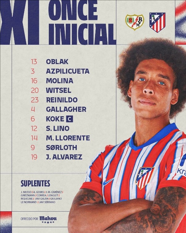 马竞vs巴列卡诺首发:阿尔瓦雷斯、加拉格尔出战,J罗替补