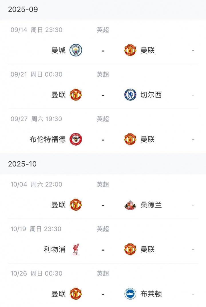 能拿几分曼联赛程:9月客战曼城、主场战切尔西,10月踢利物浦