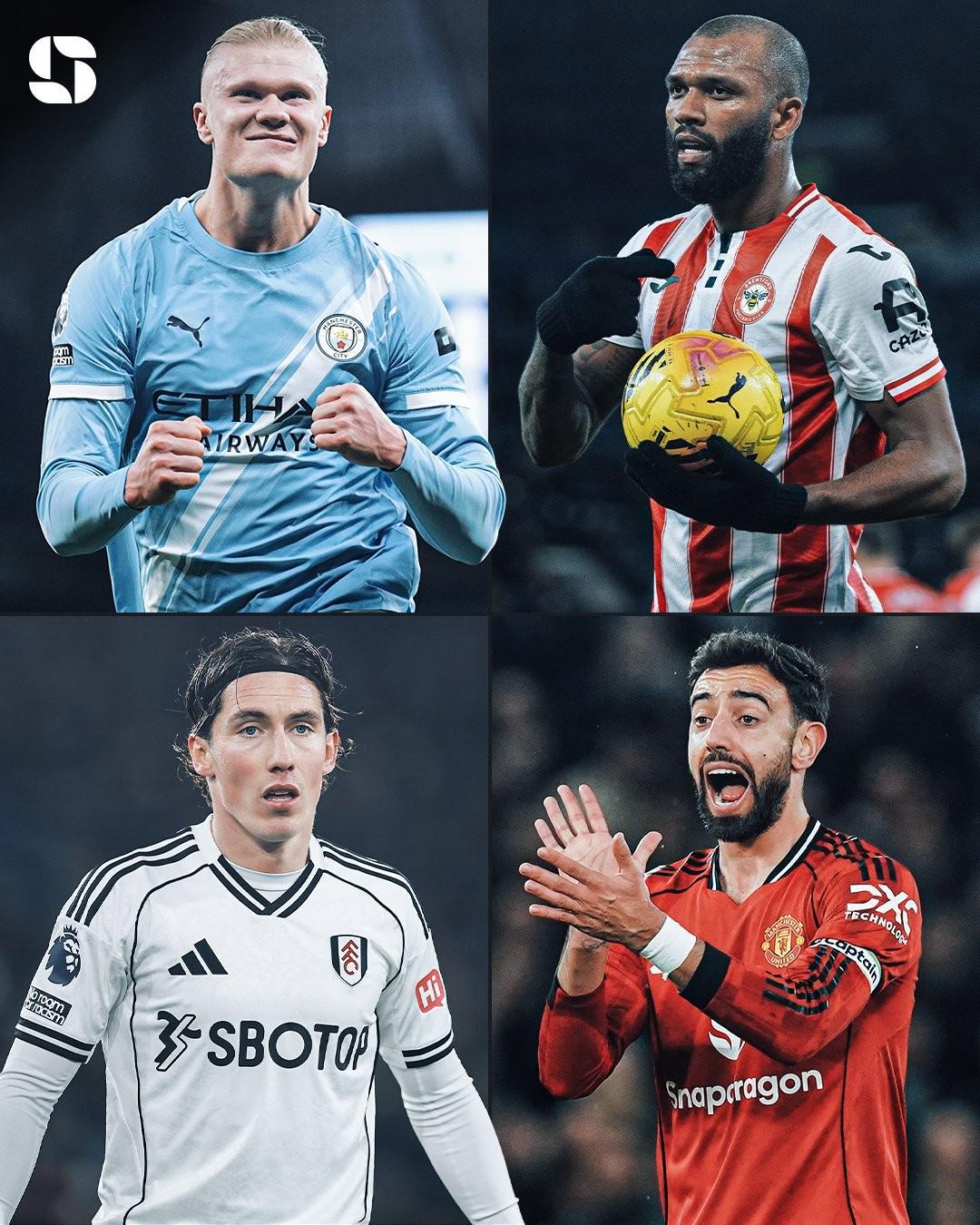 11月以来英超仅4人直接参与进球10+,哈兰德12球第1,B费上榜