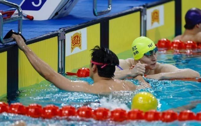 全运会男子400米自由泳预赛:潘展乐、孙杨赛道相邻,赛后泳池握手