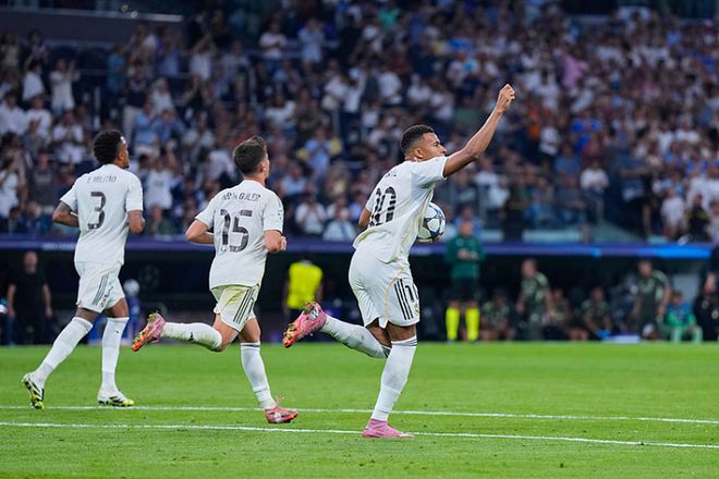 比赛开始后,皇马占据绝对主动,多次创造出有威胁的进攻,不过率先取得进球的却是马斯,第22分钟,居莱尔传球失误,马赛断球后快速反击,格林伍德弧顶分球,维阿一脚大力抽射破门得分,皇马0-1马赛,很快皇马就扳平了比分,第27分钟,罗德里戈禁区内摔倒,裁判果断判罚点球,姆巴佩点球一蹴而就,皇马1-1马赛。