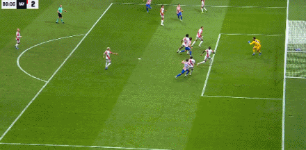 仅仅3分钟后,马竞快速回应,拉斯帕多里左路下底传中,替补登场的西蒙尼后点头槌攻门,巴塔拉奋力将球挡下,阿尔瓦雷斯机敏补射得手,马竞2:2闪电扳平比分。第87分钟,马竞中路快速推进,连续的传递,西蒙尼45度角处策应横传中路,阿尔瓦雷斯接球连续横切调整,禁区弧顶前左脚大力兜射,皮球直入球门左侧死角,阿尔瓦雷斯上演帽子戏法,马竞3:2逆转绝杀巴列卡诺。