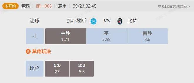 竞足 周一003意甲那不勒斯VS比萨
