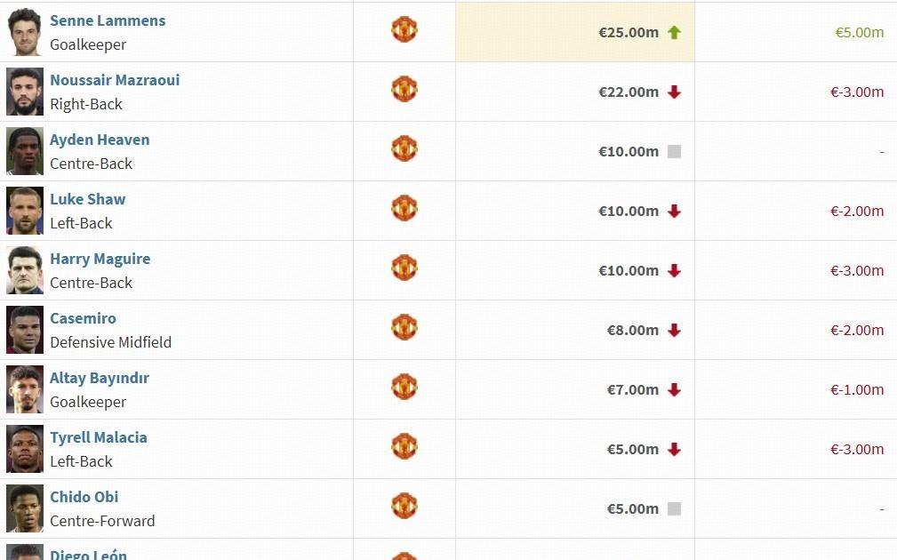 曼联球员身价变动:B费下跌至4000万欧,阿马德迪亚洛上涨1000万欧