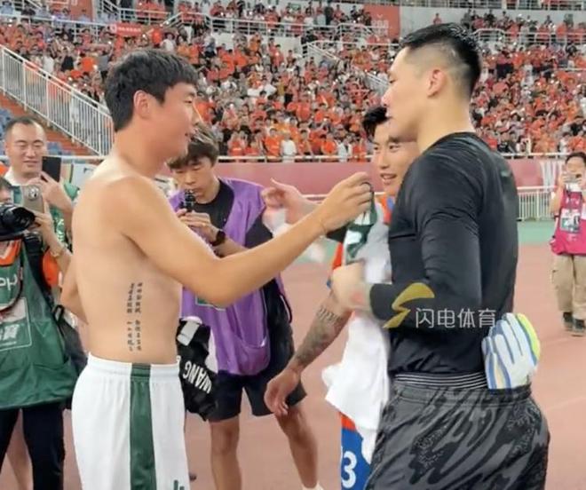 直播吧8月31日宣 据闪电体育报道,今晚京鲁大战后,王大雷和李磊两名国脚交换了球衣。